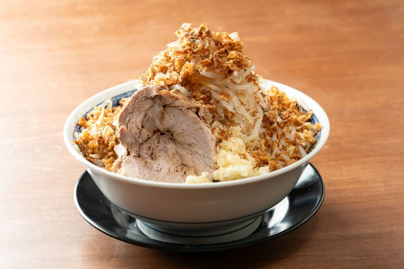もやしと刻みニンニクをご自身でご用意ください。 フライドオニオンをかけて食べ頂くのがオススメです。