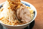 もやしと刻みニンニクをご自身でご用意ください。 フライドオニオンをかけて食べ頂くのがオススメです。