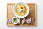 5つの旨味成分を1つのスープにまとめた旨味の厚みがある塩ラーメン! (イノシン酸、グルタミン酸、グアニル酸、コハク酸、アミノ酸) スープは鶏・昆布・ドライトマトを使用 カエシは蛤・干し貝柱・浅蜊・雲丹・干し海老を使用 アブラに香味野菜ベース・鶏油を使用 麺はプルンッとした弾力に絹のような滑らかな触感が特徴! スープを邪魔せず一体感を感じさせる、もう一口食べ進みたくなる麺。 バジルのジェノベーゼを味変アイテムにスープに浸して食べるパンはスープ(出汁)との相性が抜群! ※発送日は1/27から順次となります。 また在庫切れの場合、再入荷時期は未定となります。 何卒ご了承くださいませ。