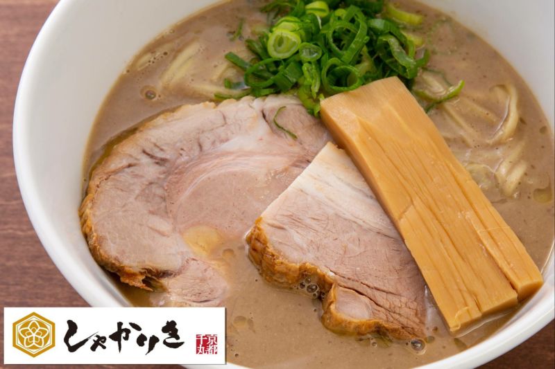 茨城県産ローズポークの豚骨を8時間じっくりと煮込んだ濃厚豚骨スープに高級アゴ煮干しを使い、丁寧に煮出したアゴ出汁をブレンドした上品な仕上がりの豚骨アゴ出汁らぁめんです。